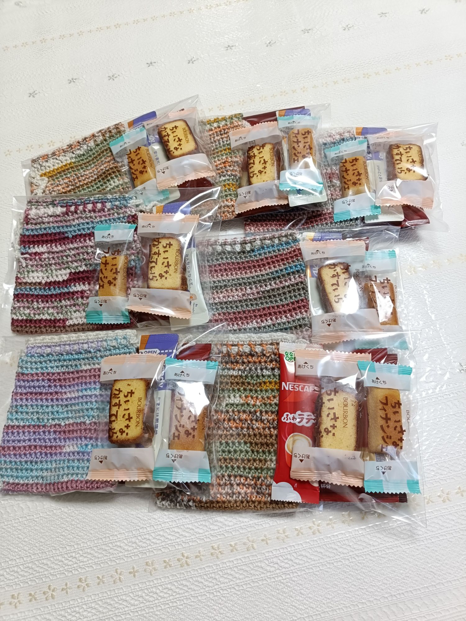 イベント用に作っていた色とりどりのハンドウォーマー。